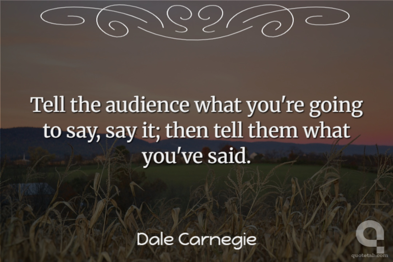 Tell the audience what you're going to say, say it; then tell them what you've said. Dale Carnegie