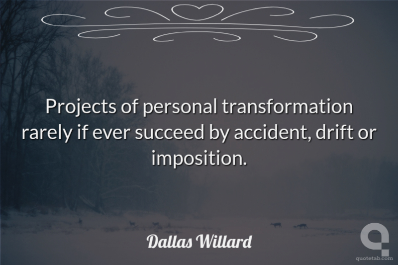 Projects of personal transformation rarely if ever succeed by accident, drift or imposition. Dallas Willard