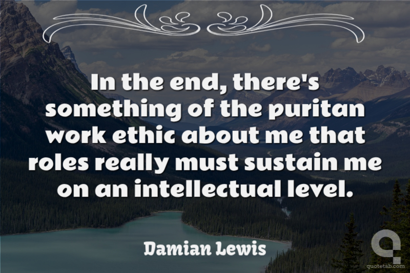In the end, there's something of the puritan work ethic about me that roles really must sustain me on an intellectual level. Damian Lewis