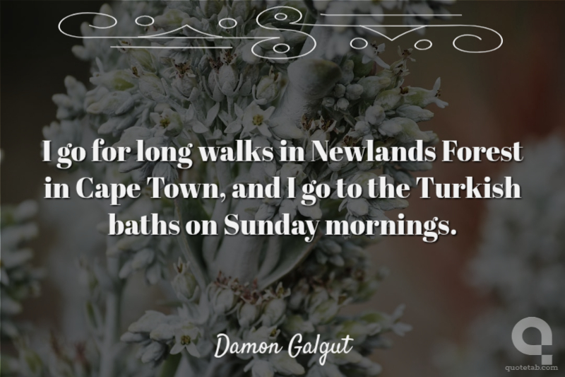 I go for long walks in Newlands Forest in Cape Town, and I go to the Turkish baths on Sunday mornings. Damon Galgut