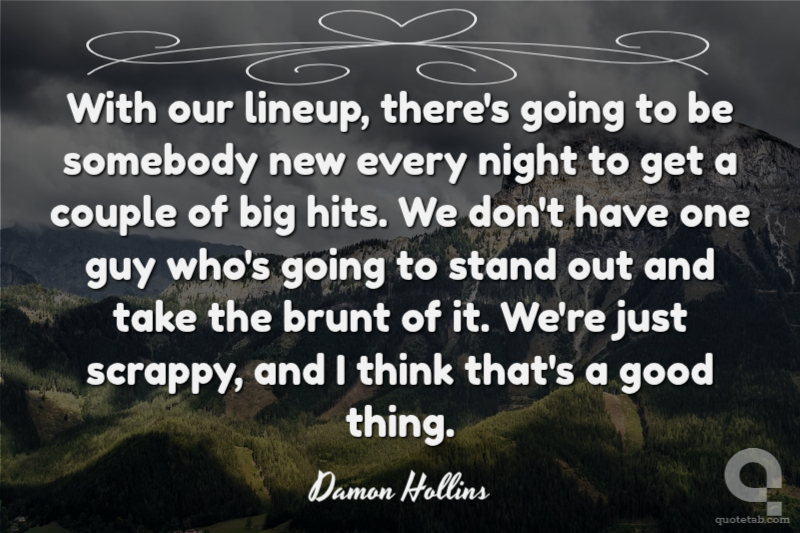 With our lineup, there's going to be somebody new every night to get a couple of big hits. We don't have one guy who's going to stand out and take the brunt of it. We're just scrappy, and I think that's a good thing. Damon Hollins