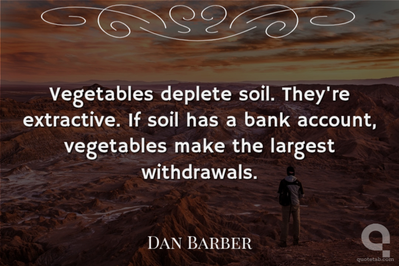 Vegetables deplete soil. They're extractive. If soil has a bank account, vegetables make the largest withdrawals. Dan Barber
