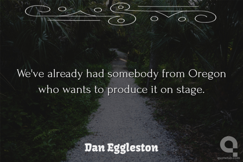 We've already had somebody from Oregon who wants to produce it on stage. Dan Eggleston