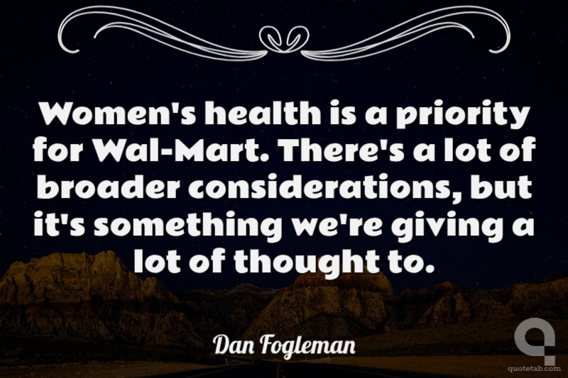 Women's health is a priority for Wal-Mart. There's a lot of broader considerations, but it's something we're giving a lot of thought to. Dan Fogleman