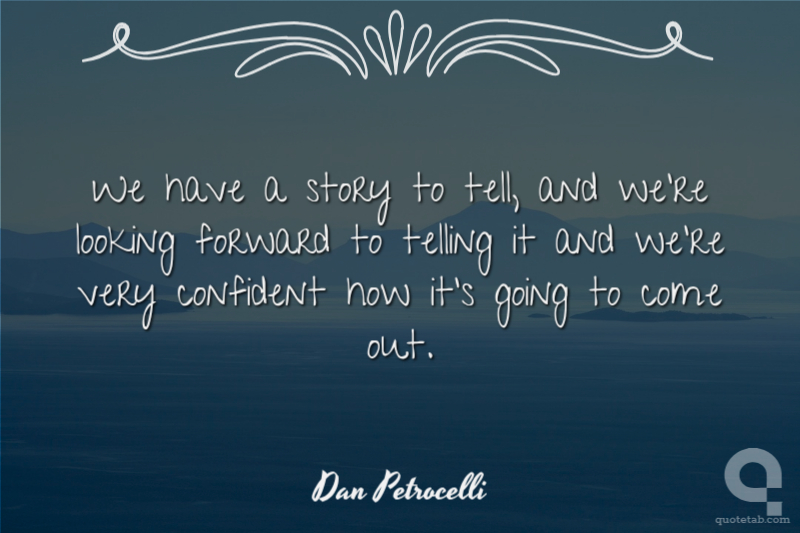 We have a story to tell, and we're looking forward to telling it and we're very confident how it's going to come out. Dan Petrocelli
