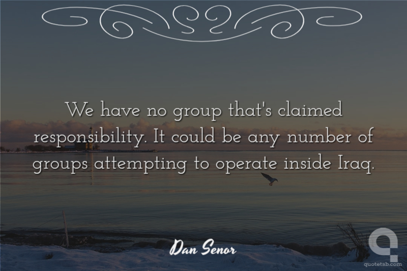 We have no group that's claimed responsibility. It could be any number of groups attempting to operate inside Iraq. Dan Senor