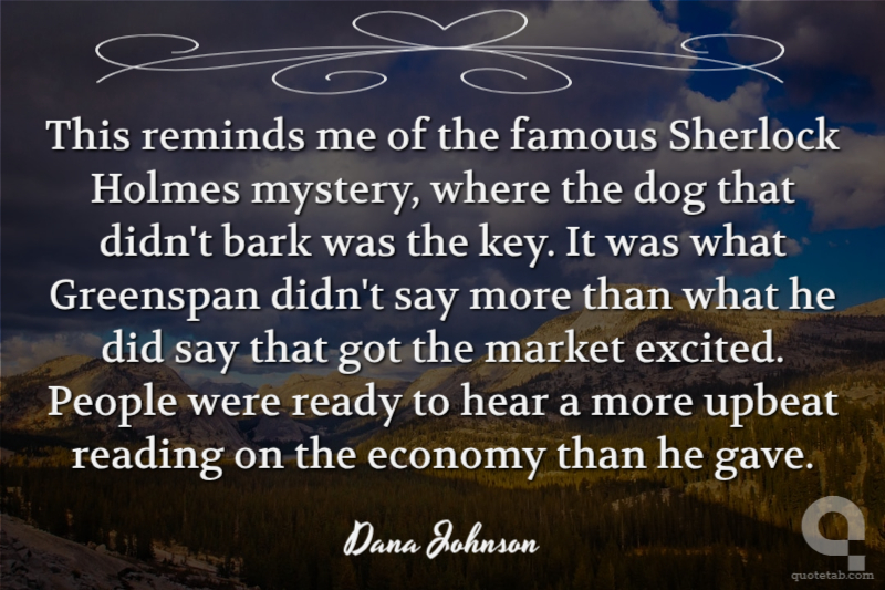This reminds me of the famous Sherlock Holmes mystery, where the dog that didn't bark was the key. It was what Greenspan didn't say more than what he did say that got the market excited. People were ready to hear a more upbeat reading on the economy than he gave. Dana Johnson