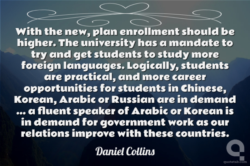 With the new, plan enrollment should be higher. The university has a mandate to try and get students to study more foreign languages. Logically, students are practical, and more career opportunities for students in Chinese, Korean, Arabic or Russian are in demand ... a fluent speaker of Arabic or Korean is in demand for government work as our relations improve with these countries. Daniel Collins