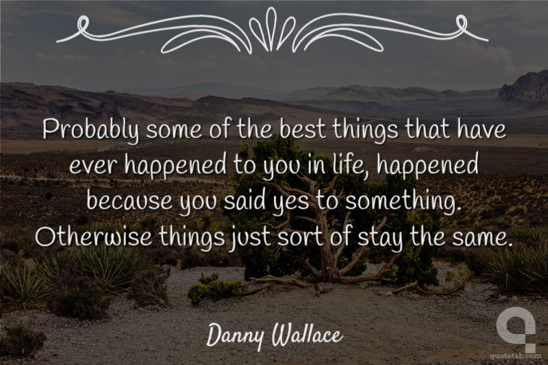 Probably some of the best things that have ever happened to you in life, happened because you said yes to something. Otherwise things just sort of stay the same. Danny Wallace