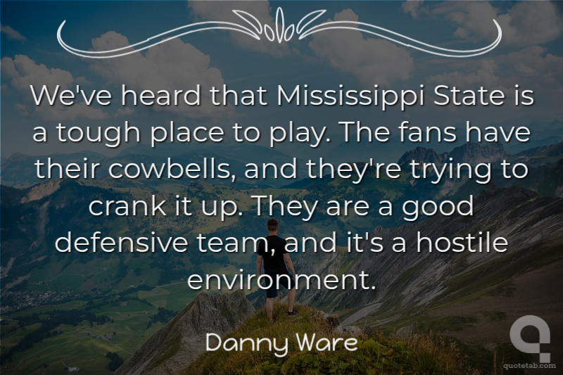 We've heard that Mississippi State is a tough place to play. The fans have their cowbells, and they're trying to crank it up. They are a good defensive team, and it's a hostile environment. Danny Ware