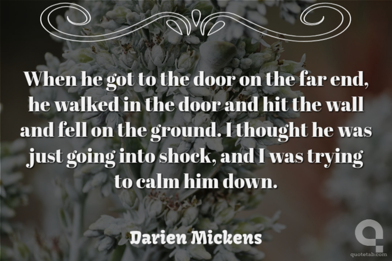 When he got to the door on the far end, he walked in the door and hit the wall and fell on the ground. I thought he was just going into shock, and I was trying to calm him down. Darien Mickens