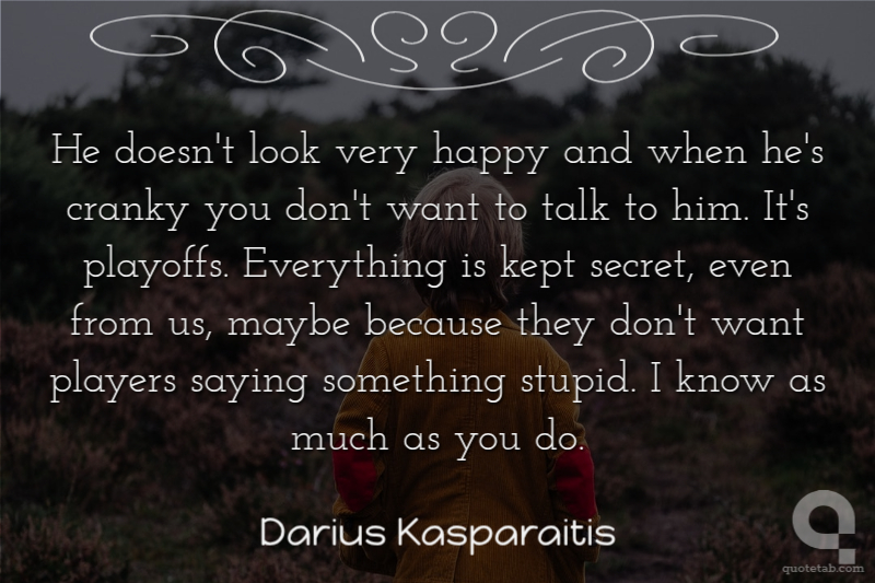He doesn't look very happy and when he's cranky you don't want to talk to him. It's playoffs. Everything is kept secret, even from us, maybe because they don't want players saying something stupid. I know as much as you do. Darius Kasparaitis