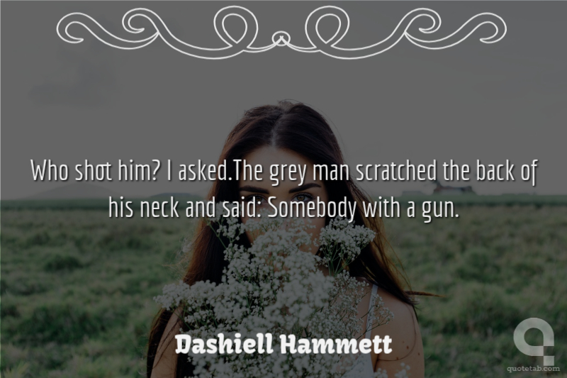 Who shot him? I asked.The grey man scratched the back of his neck and said: Somebody with a gun. Dashiell Hammett