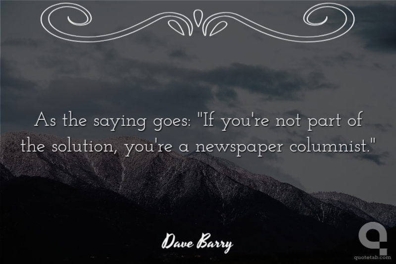 As the saying goes: "If you're not part of the solution, you're a newspaper columnist." Dave Barry