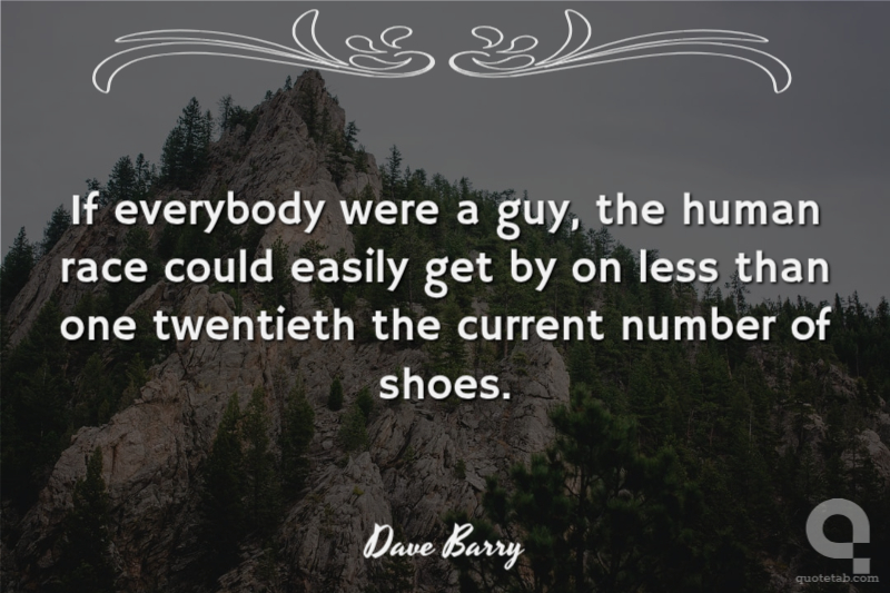 If everybody were a guy, the human race could easily get by on less than one twentieth the current number of shoes. Dave Barry