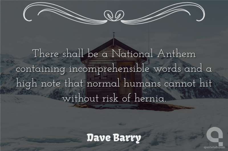 There shall be a National Anthem containing incomprehensible words and a high note that normal humans cannot hit without risk of hernia. Dave Barry