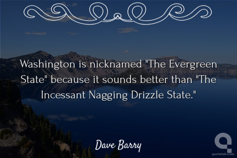 Washington is nicknamed "The Evergreen State" because it sounds better than "The Incessant Nagging Drizzle State." Dave Barry