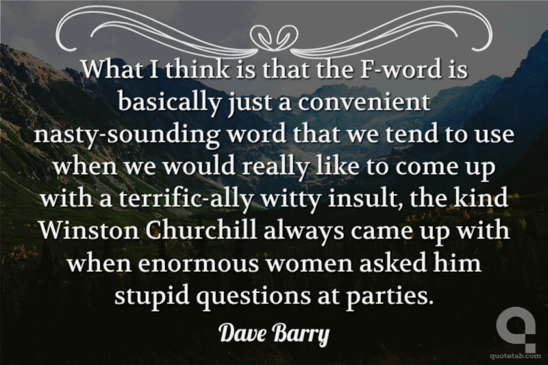 What I think is that the F-word is basically just a convenient nasty-sounding word that we tend to use when we would really like to come up with a terrific-ally witty insult, the kind Winston Churchill always came up with when enormous women asked him stupid questions at parties. Dave Barry