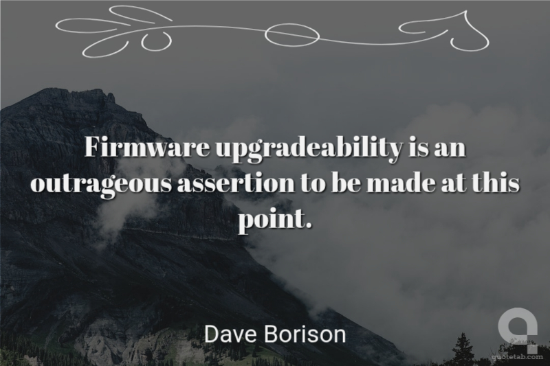 Firmware upgradeability is an outrageous assertion to be made at this point. Dave Borison