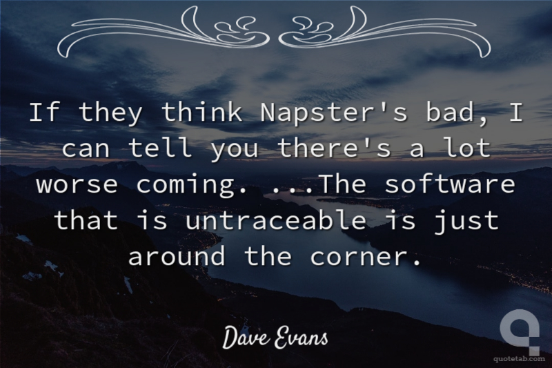 If they think Napster's bad, I can tell you there's a lot worse coming. ...The software that is untraceable is just around the corner. Dave Evans