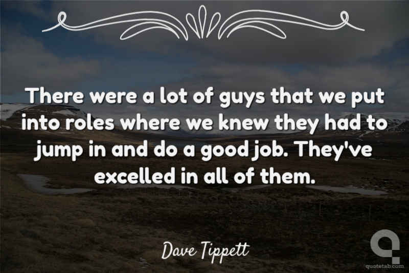 There were a lot of guys that we put into roles where we knew they had to jump in and do a good job. They've excelled in all of them. Dave Tippett