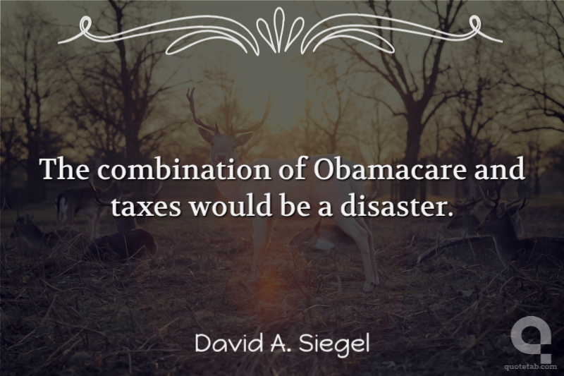 The combination of Obamacare and taxes would be a disaster. David A. Siegel