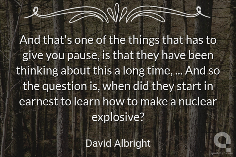 And that's one of the things that has to give you pause, is that they have been thinking about this a long time, ... And so the question is, when did they start in earnest to learn how to make a nuclear explosive? David Albright