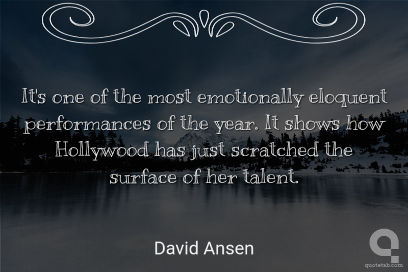 It's one of the most emotionally eloquent performances of the year. It shows how Hollywood has just scratched the surface of her talent. David Ansen