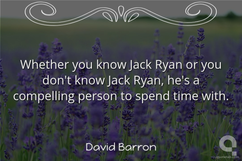 Whether you know Jack Ryan or you don't know Jack Ryan, he's a compelling person to spend time with. David Barron