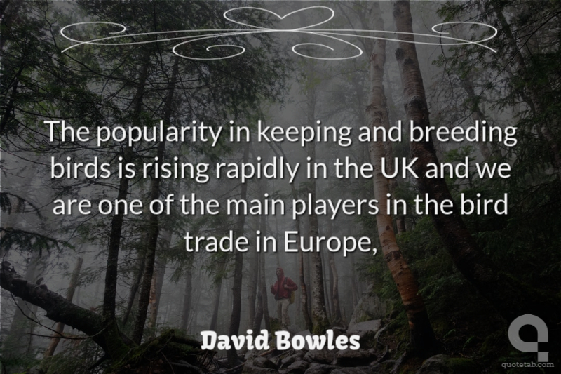 The popularity in keeping and breeding birds is rising rapidly in the UK and we are one of the main players in the bird trade in Europe, David Bowles