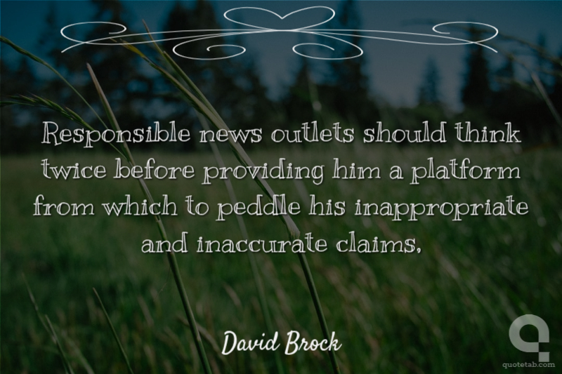 Responsible news outlets should think twice before providing him a platform from which to peddle his inappropriate and inaccurate claims, David Brock