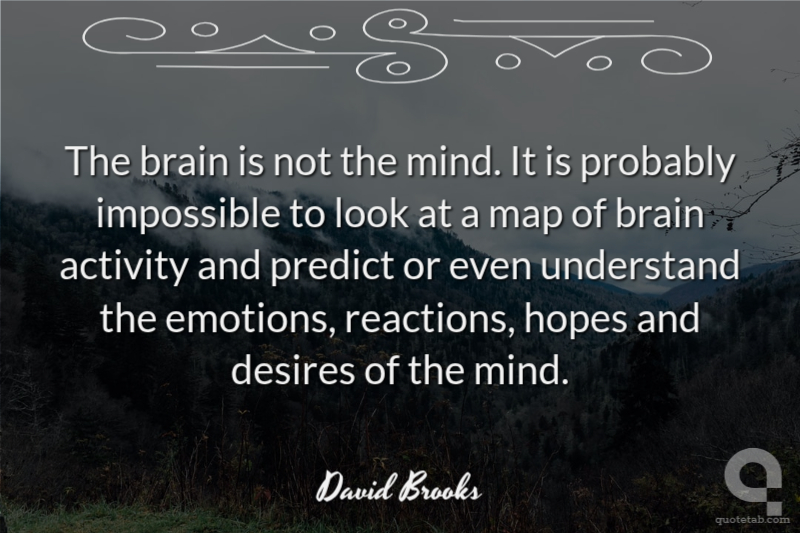 The brain is not the mind. It is probably impossible to look at a map of brain activity and predict or even understand the emotions, reactions, hopes and desires of the mind. David Brooks