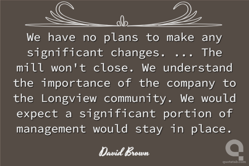 We have no plans to make any significant changes. ... The mill won't close. We understand the importance of the company to the Longview community. We would expect a significant portion of management would stay in place. David Brown