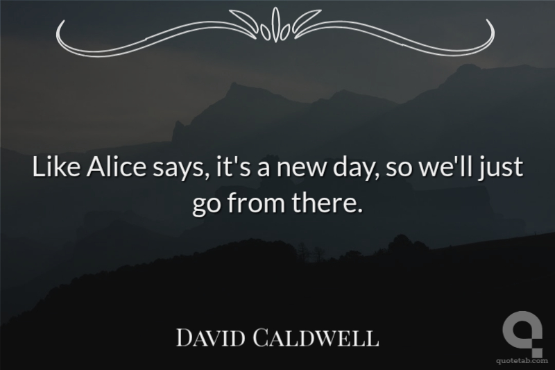 Like Alice says, it's a new day, so we'll just go from there. David Caldwell