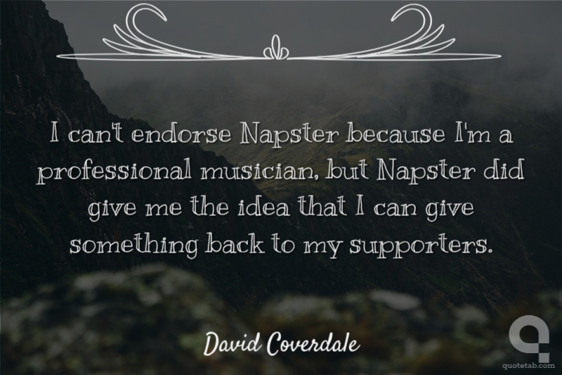 I can't endorse Napster because I'm a professional musician, but Napster did give me the idea that I can give something back to my supporters. David Coverdale
