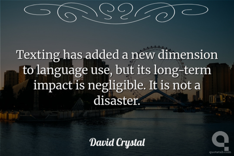 Texting has added a new dimension to language use, but its long-term impact is negligible. It is not a disaster. David Crystal