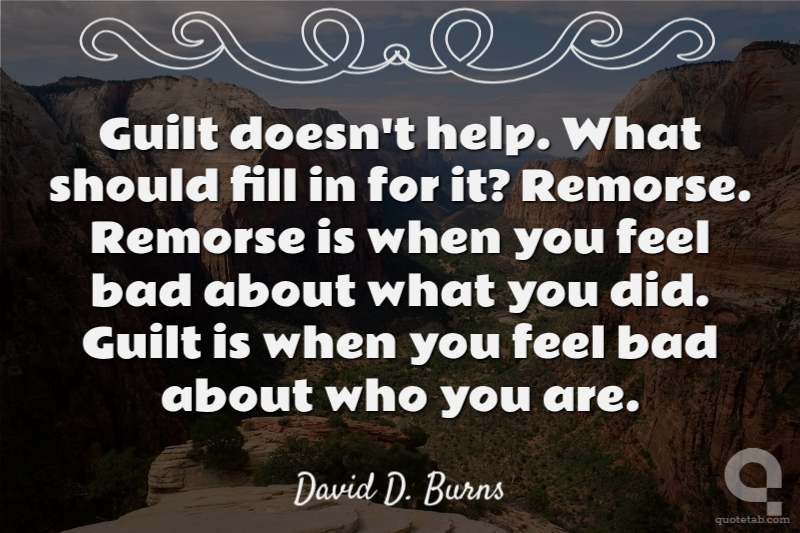 Guilt doesn't help. What should fill in for it? Remorse. Remorse is when you feel bad about what you did. Guilt is when you feel bad about who you are. David D. Burns