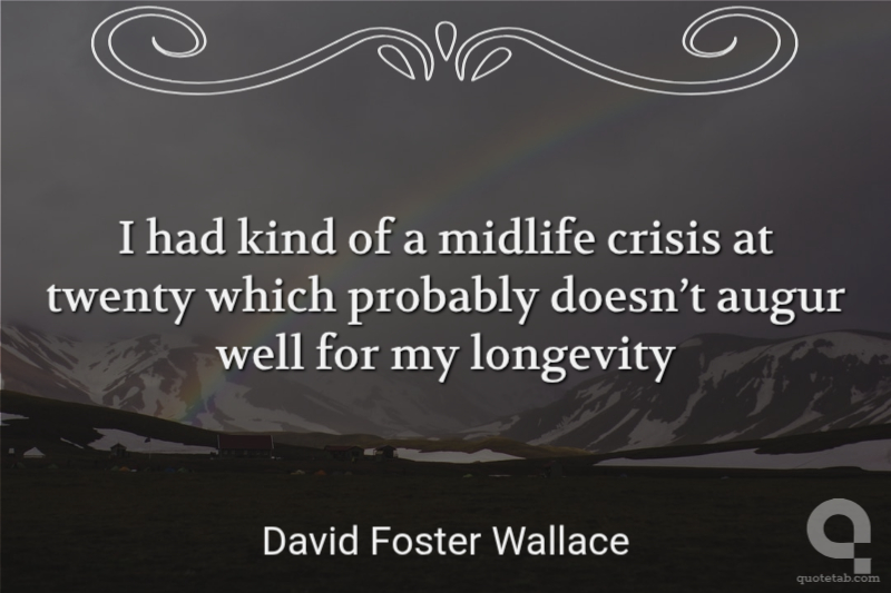 I had kind of a midlife crisis at twenty which probably doesn’t augur well for my longevity David Foster Wallace