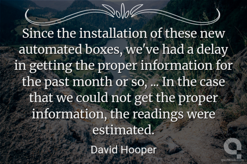 Since the installation of these new automated boxes, we've had a delay in getting the proper information for the past month or so, ... In the case that we could not get the proper information, the readings were estimated. David Hooper