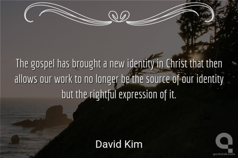 The gospel has brought a new identity in Christ that then allows our work to no longer be the source of our identity but the rightful expression of it. David Kim