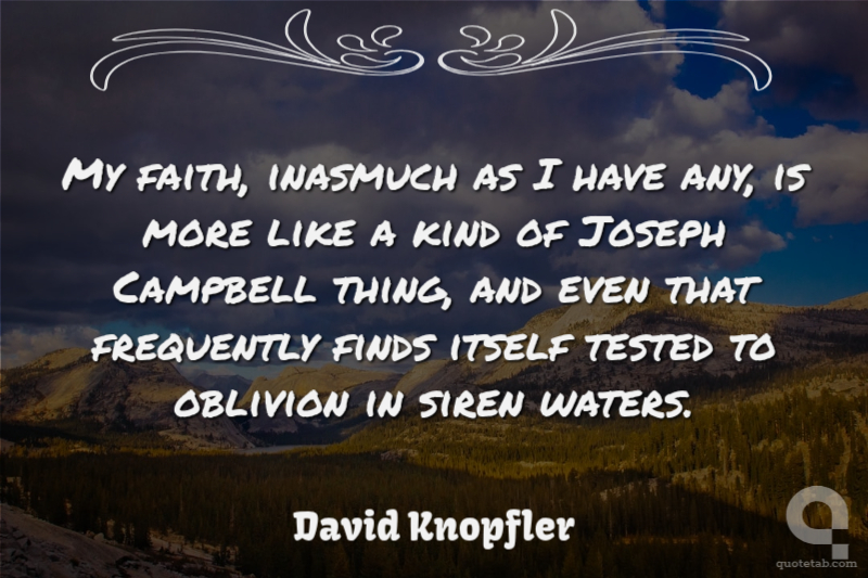 My faith, inasmuch as I have any, is more like a kind of Joseph Campbell thing, and even that frequently finds itself tested to oblivion in siren waters. David Knopfler