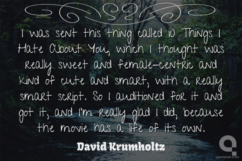 I was sent this thing called 10 Things I Hate About You, which I thought was really sweet and female-centric and kind of cute and smart, with a really smart script. So I auditioned for it and got it, and I'm really glad I did, because the movie has a life of its own. David Krumholtz