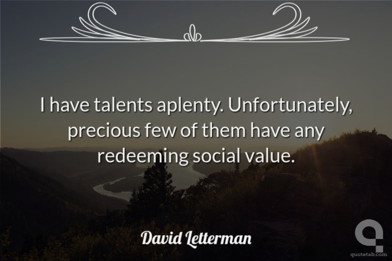 I have talents aplenty. Unfortunately, precious few of them have any redeeming social value. David Letterman