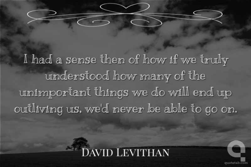 I had a sense then of how if we truly understood how many of the unimportant things we do will end up outliving us, we'd never be able to go on. David Levithan