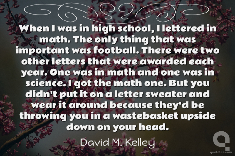 When I was in high school, I lettered in math. The only thing that was important was football. There were two other letters that were awarded each year. One was in math and one was in science. I got the math one. But you didn't put it on a letter sweater and wear it around because they'd be throwing you in a wastebasket upside down on your head. David M. Kelley