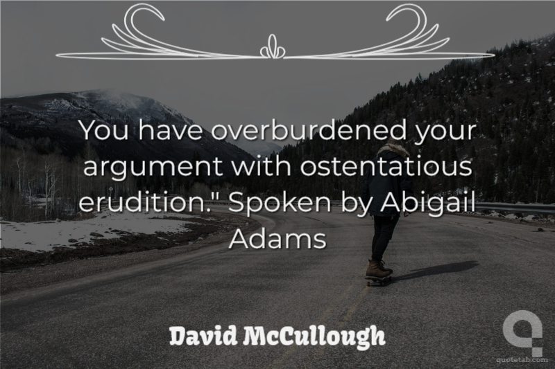 You have overburdened your argument with ostentatious erudition." Spoken by Abigail Adams David McCullough