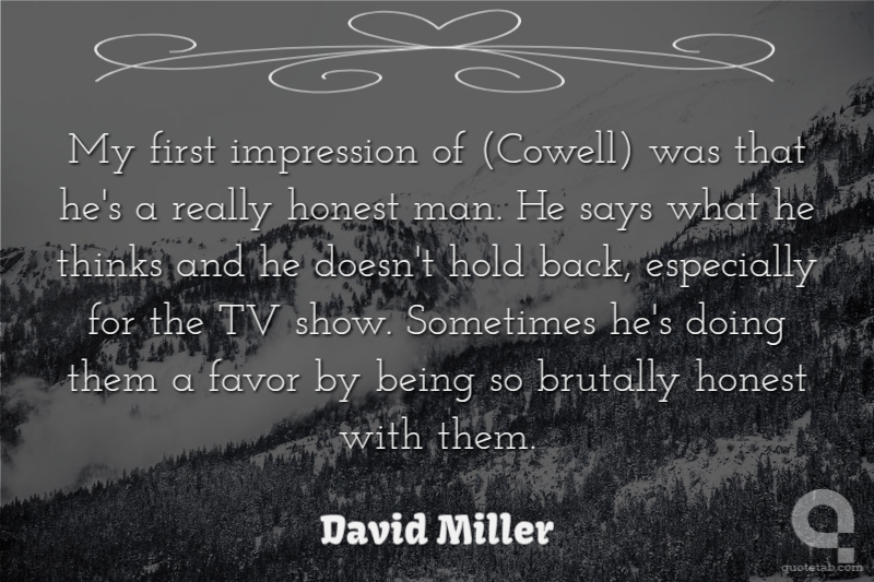 My first impression of (Cowell) was that he's a really honest man. He says what he thinks and he doesn't hold back, especially for the TV show. Sometimes he's doing them a favor by being so brutally honest with them. David Miller