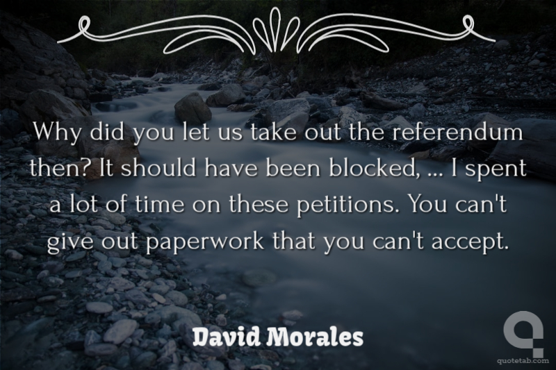 Why did you let us take out the referendum then? It should have been blocked, ... I spent a lot of time on these petitions. You can't give out paperwork that you can't accept. David Morales
