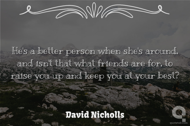 He's a better person when she's around, and isn't that what friends are for, to raise you up and keep you at your best? David Nicholls