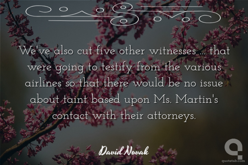 We've also cut five other witnesses ... that were going to testify from the various airlines so that there would be no issue about taint based upon Ms. Martin's contact with their attorneys. David Novak